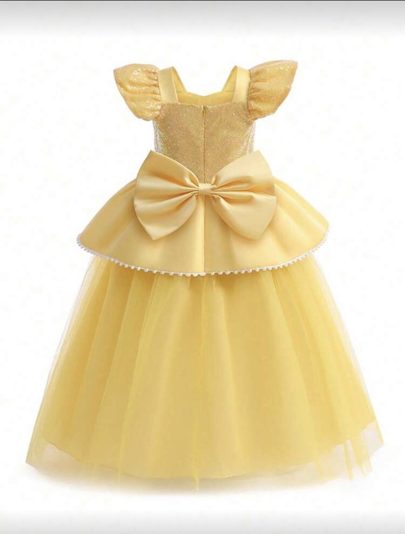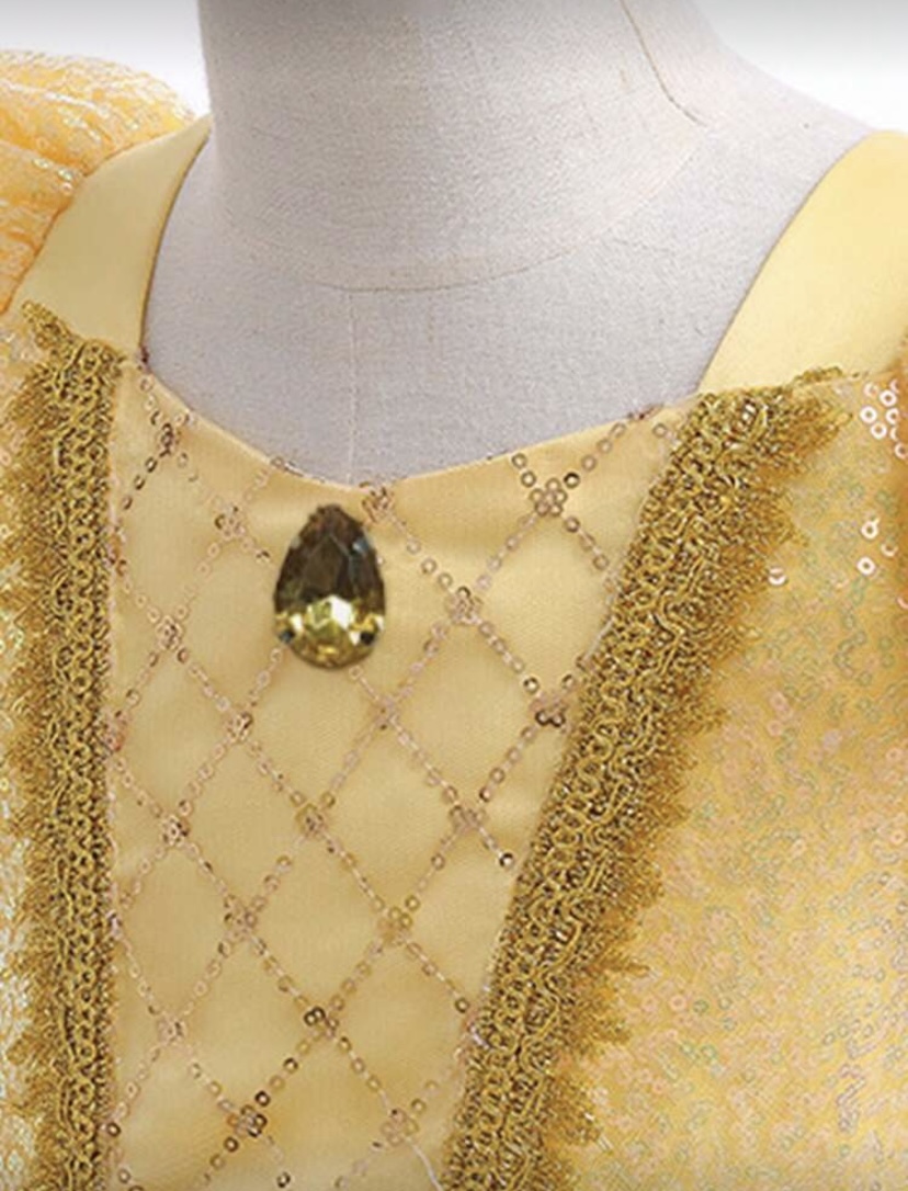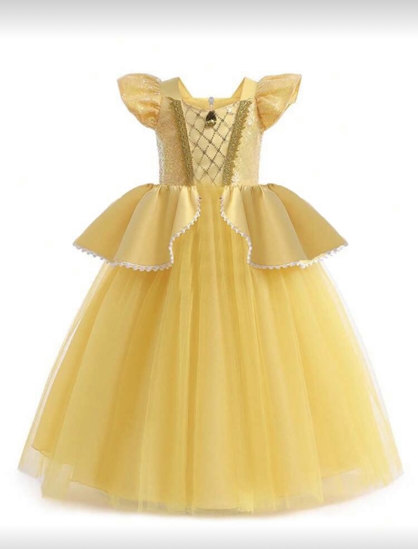 Sárga színű korona, varázspáca kesztyű és ékszerszettet is tudsz vásárolni a ruhához a jelmez kellékek menüre kattintva találod.