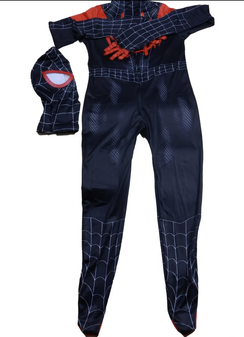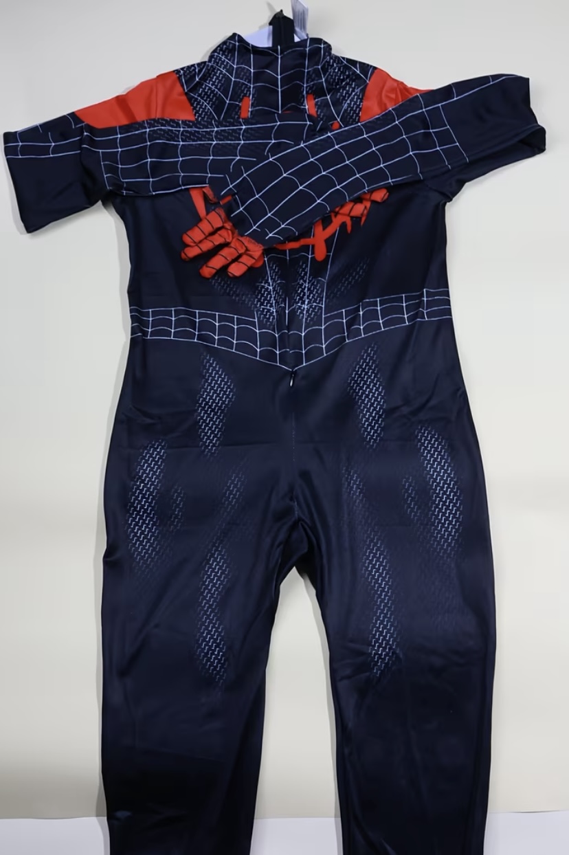Pókember jelmez, overál, maszkkal. Szeménél átlátszó anyagból. Elöl sliccel ellátott, így nem kell levenni az egész jelmezt a mosdóban.