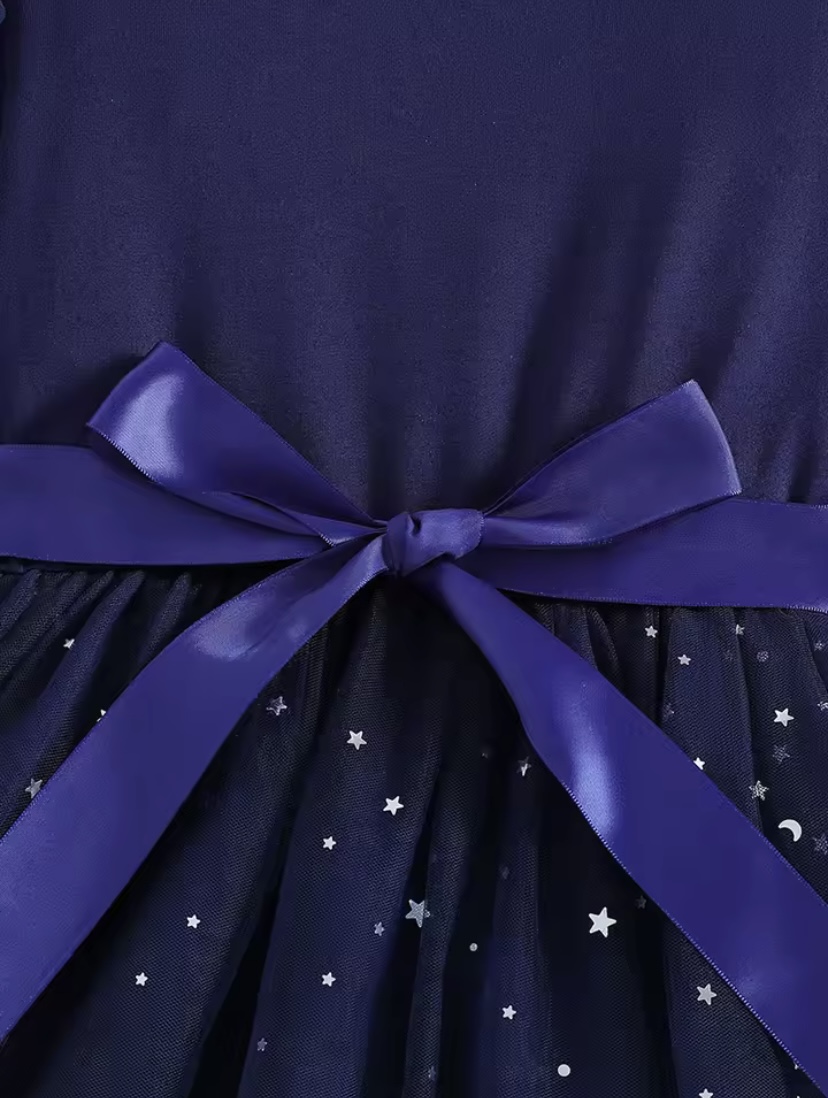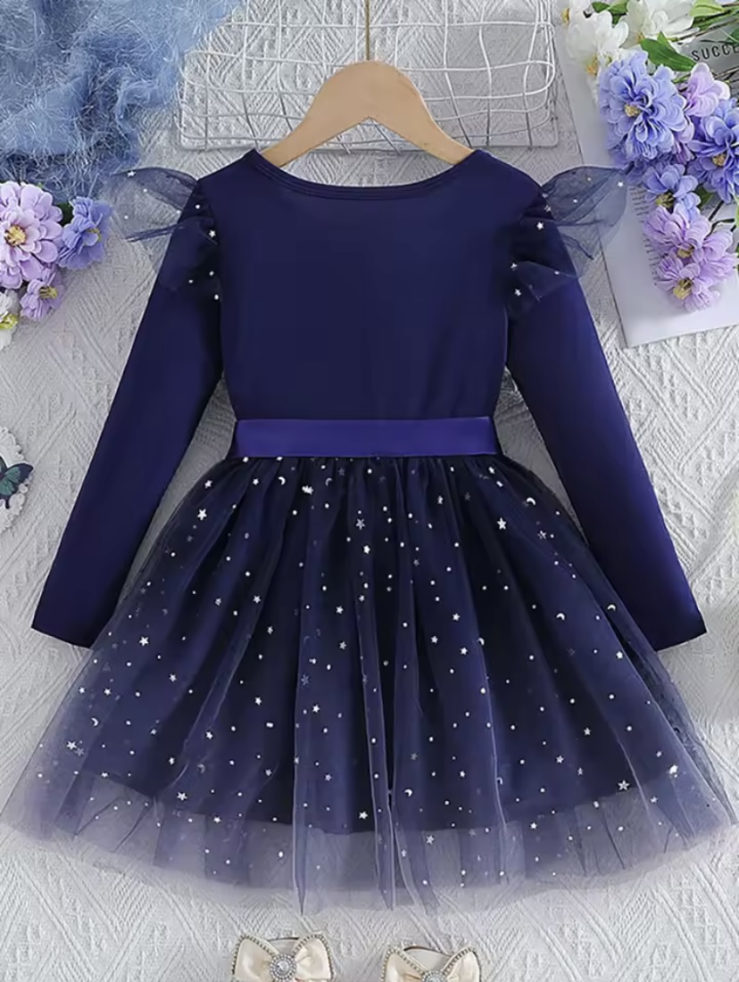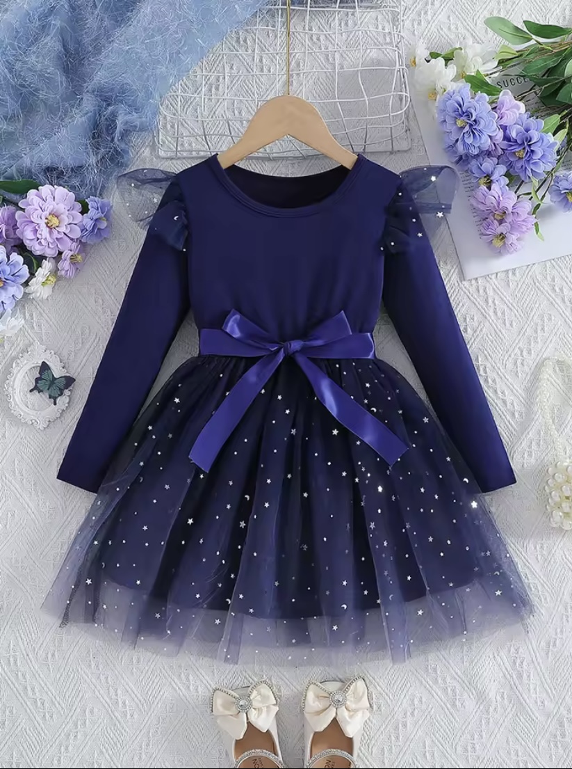Karácsonyra csillógó kék kislány ruha