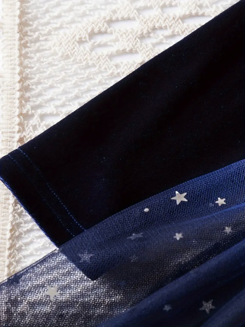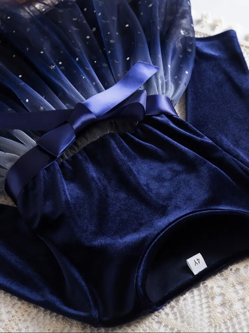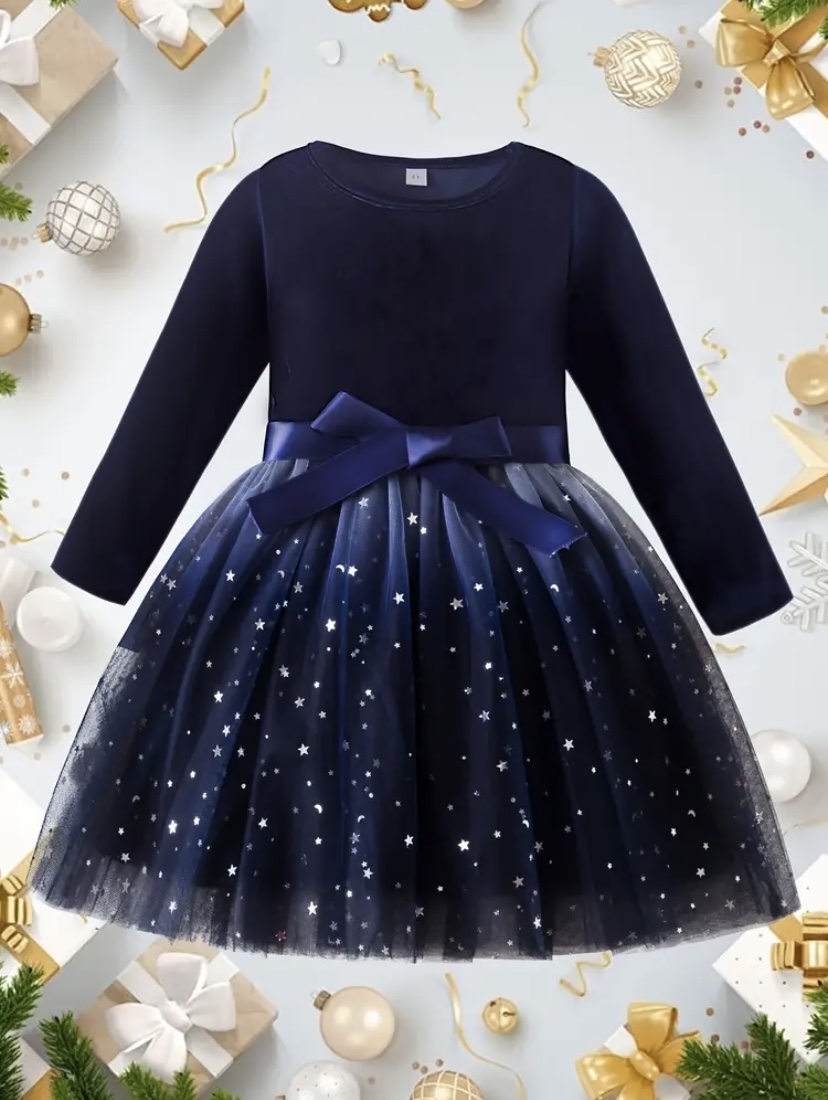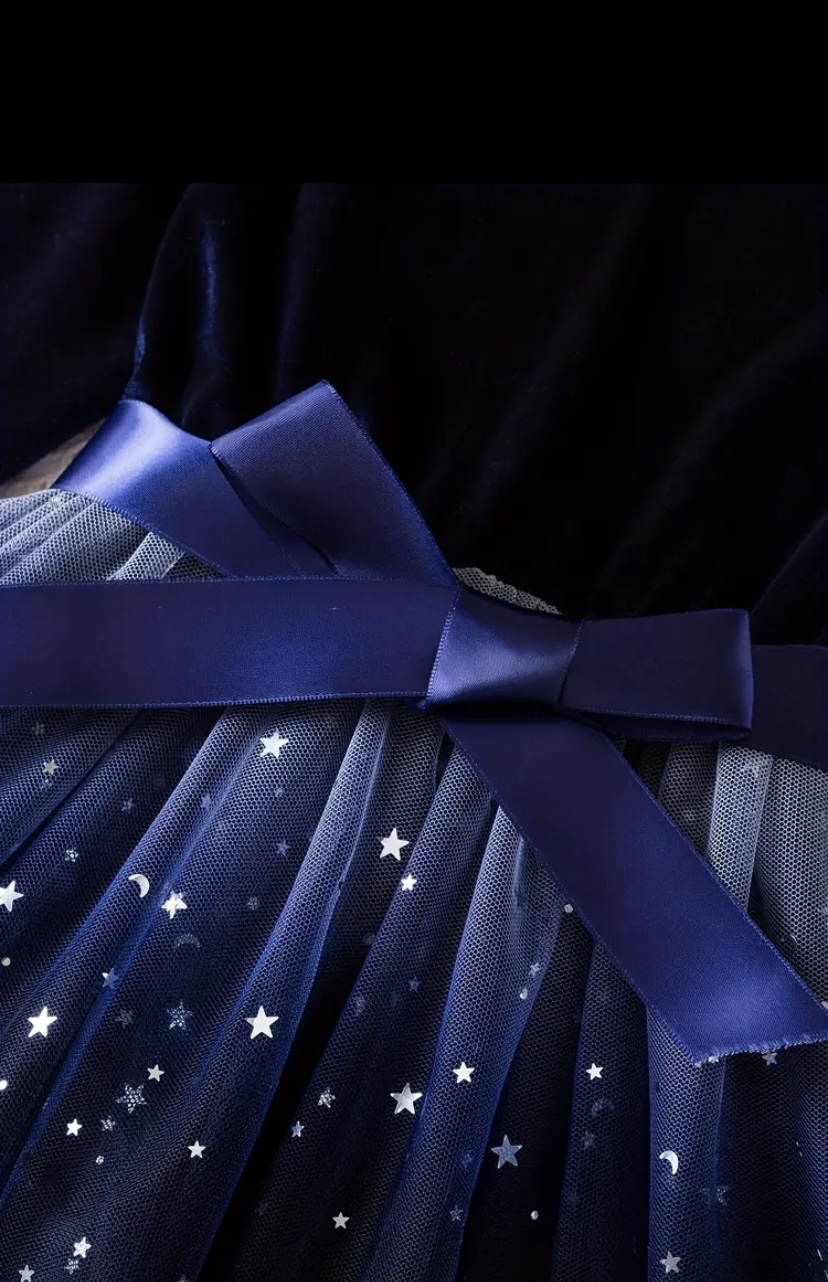 Karácsonyi fotózásra ünneplőruha. Csillogó tüll szoknya résszel, bársony felsőrésszel, deréknál masnira megköthető szalaggal.
